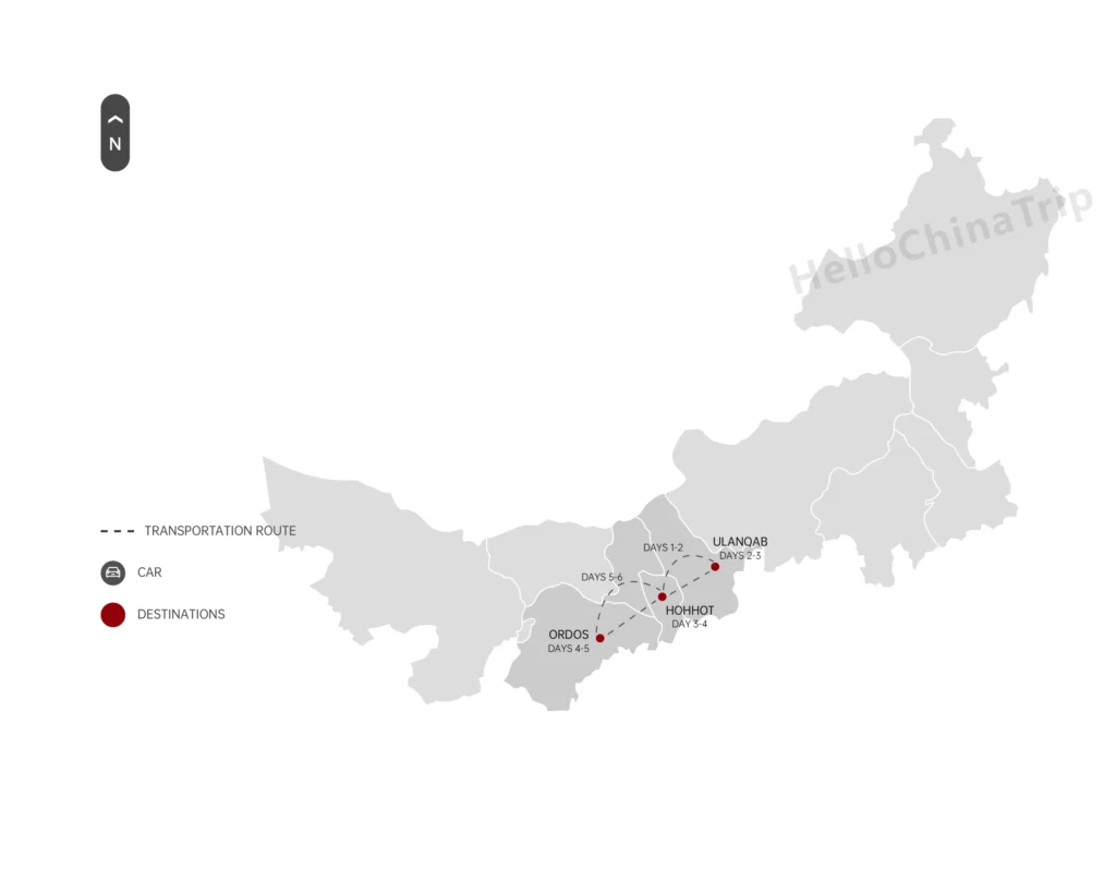 On this 6-day private tour, you can experience local nomadic life, enjoy the wonderful scenery of the alpine meadows of Huitengxile Grassland, hike in the majestic Yinshan Mountains, explore the heart of the Kubuqi Desert away from civilization, and enjoy Mongolian handicrafts.