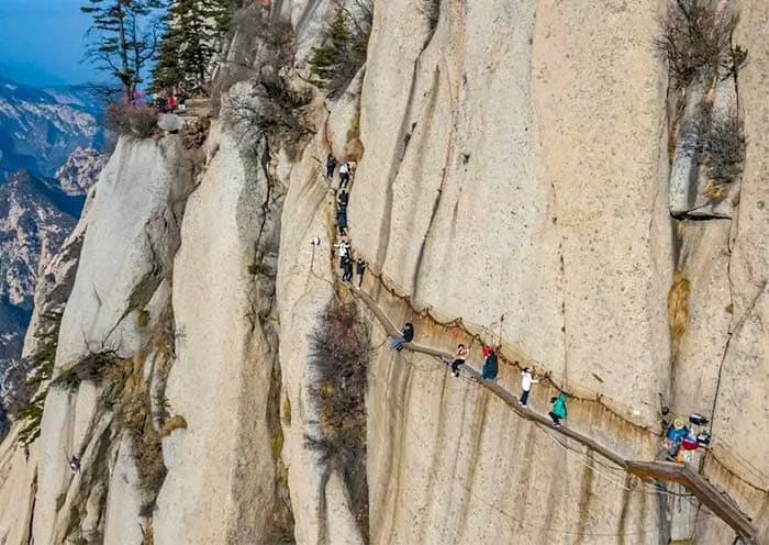 Route: the most challenging way to explore Mount Hua: the Cable Car – North Peak – Canglongling – Middle Peak – East Peak – Plank Road in the Sky – South Peak – West Peak – Cable Car route