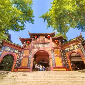 As the closest and greatest mountain for hiking near Chengdu, Mount Qingcheng offers a variety of hiking trails, ranging from easy walks to challenging climbs. Welcome to hiking in the Kung Fu Panda Po’s Panda Village. During the hike, you can explore the Taoist temples, waterfalls, streams, and forests. To reach the summit, you can take a sightseeing car to the entrance, then walk for 20 minutes to the cable car station near Yuecheng Lake (optional ferry available) to go up (a 5-minute cable car ride). From there, it takes about 1 hour to hike to the summit or about 3-4 hours to hike the entire way on foot. During the hike, you can explore Tianshi Celestial Cave (famous for the 1000-year-old ginkgo tree planted by the founder of Taoism), Shangqing Palace (the biggest Taoist temple in Qingcheng), and Lao Jun Ge Pagoda (best spot to view the summit of Mt. Qingcheng). The hike down takes about 2 hours (optional cable car ride available). If time permit, don’t miss the Jianfu Palace, located near the entrance, which was originally constructed in the Tang Dynasty (618-907). Local people like to have a cup of tea there on weekends. Although the palace looks ordinary from the outside, red lanterns hang all over the palace, making it a surprise when entering, especially under the contrast of the green trees in and around the palace.