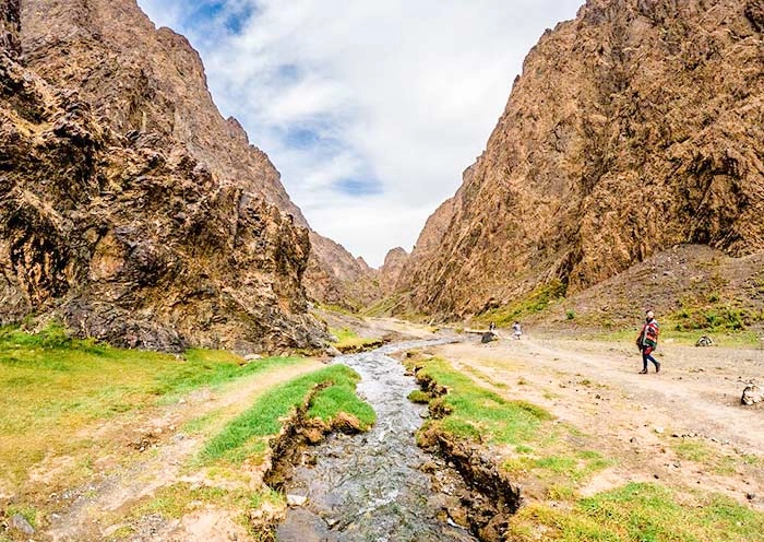After exploring Dalanzadgad, we will continue with a short drive to the breathtaking Yolyn Am Gorge, also known as Eagle Valley. This natural wonder is nestled within Gobi Gurvan Saikhan National Park and is renowned for its towering rock walls, which rise 200-300 meters (650-980 feet) high, creating dramatic and enclosed atmosphere. In some sections, the gorge is so narrow that only one person can pass through at a time, adding to its sense of mystery and beauty.