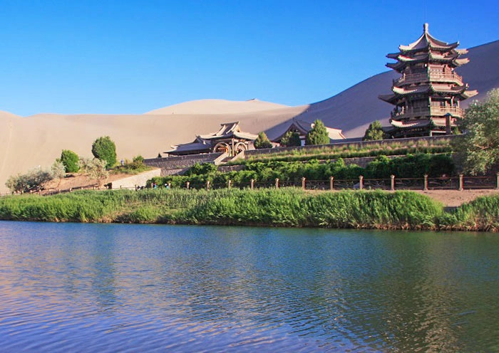 Highlight 4: Stand in awe in front of Mingsha Mountain & Crescent Lake, one of the Top 5 Most Beautiful Deserts in China, to witness the unique spectacle of mountains, spring, and sand coexisting in the desert. Sit atop the peak of Singing Sand Dunes and await a stunning sunset in front of the Crescent Spring.