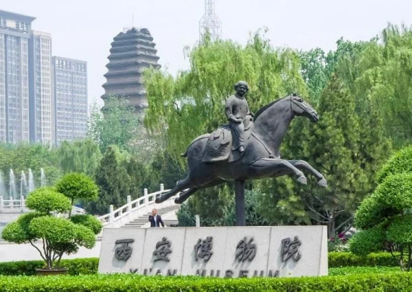 This morning, drive to visit the Xian Museum (Closed on Tuesday). It is one of the top museums in China, showcasing the 3,000-year history of Xian, the one-time capital of 13 dynasties, its economy, social life, as well as cultural exchange and trade with foreign countries. The museum is less crowded than the Shaanxi History Museum. The famous architect Zhang Jinqiu, who also designed the Shaanxi History Museum, designed this building. Its architectural design symbolizes the traditional Chinese concept of the universe – a round heaven and a square earth. With more than 110,000 pieces of cultural relics, including bronze wares, jade wares, gold and silver wares, three-color glazed wares, painting and calligraphy, miscellaneous wares, seals, Buddhist statues, stone carvings, porcelains, etc., the Xian Museum has achieved a wide reputation and popularity for its historical and cultural value. In fact, the Xian Museum is made up of an exhibition hall, the site of the Jianfu Temple in the Tang Dynasty, and the Small Wild Goose Pagoda.