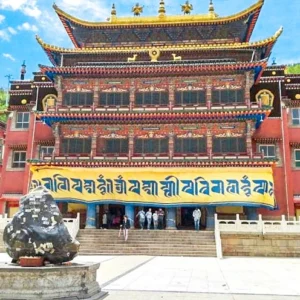 During your visit, you’ll be impressed by the blend of Tibetan and traditional Chinese architectural styles. You’ll admire magnificent Buddha stupas, wall paintings, and prayer wheels, while exploring its stunning halls one by one. These include the Eight-Treasure Auspicious Pagoda, Small Golden-Roofed Hall, Longevity Hall, Kalachakra Pagoda, Great Scripture Hall, Great Golden-Roofed Hall, Maitreya Buddha Hall, Nine-Room Hall, Kalachakra Scripture College, Butter Sculpture Hall, and the Scripture Library – each offering a glimpse into the monastery’s spiritual depth and artistic heritage.