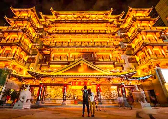 As the cruise draws to an end, your next destination beckons – Beijing Road Pedestrian Street. The nightlife here is vibrant. A bustling commercial street, Beijing Road is illuminated with neon signs, tempting you to explore its many shopping outlets. From high-end boutiques to local streetwear brands, there’s something here for every shopper. Everywhere you turn, the aromas of traditional Cantonese snacks fill the air. Local vendors, some of whom have been mastering their craft for generations, offer a myriad of tantalizing treats. From sizzling oyster omelets to the savory richness of dim sum; from the sweetness of freshly-made mooncakes to the cooling touch of herbal jelly – every flavor tells a story of Guangzhou’s culinary heritage. At the end of Beijing Road, you’ll be pleasantly surprised to discover, hidden within the bustling urban area, a sacred and ancient temple – the Giant Buddha Temple. Under the illumination of the night lights, it stands majestic and resplendent. (Alternative Plan: If you’ve already visited Beijing Road, we can switch to Yongqing Fang or Shangxiajiu Pedestrian Street.)