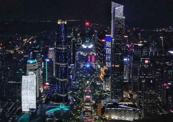 Highlight 1: Explore Zhujiang New Town and experience the city’s modern dynamism. Neon lights and towering skyscrapers illuminate the area.