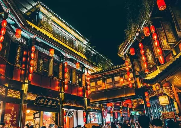 When the sun sets, the nightlife on Jinli Street becomes even more charming. Known as the “Chengdu Riverside Scene at Qingming Festival Scroll” and ranked at the top of the world’s most beautiful streets by CNN Travel in 2021, Jinli Street was first built during the Three Kingdoms Period (220-280) and was then known as “Shu Jinli”. Walking on Jinli Street, you can appreciate the brilliant Chinese Traditional buildings of Qing Dynasty style (1616-1911), buy all kinds of souvenirs (Shu embroidery, lacquer products, folk handicrafts, calligraphy, and paintings), try delicious local snacks (Dan Dan Noodles, Egg Pancake, Bon Bon Chicken, Sweet Potato Noodles with Pork Intestines, Iced Jelly, Sour and Spicy Tofu Pudding), and discover intangible heritages like Sugar Painting, Shadow Puppy Play, Sichuan Opera Show…