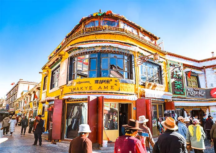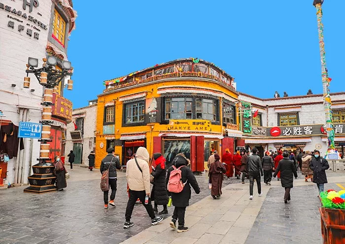 Highlight 6: Soak in Tibetan culture as you stroll through Barkhor Street, joining pilgrims in their clockwise walk while spinning prayer wheels and chanting mantras.