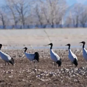 Your bird-watching adventure will focus primarily on Hutoushan Reservoir (虎头山水库), the prime location to witness large flocks of black-necked cranes. The sight of these magnificent birds soaring against a backdrop of snow-capped mountains creates a truly harmonious and picturesque experience. If time allows, a visit to Karze Reservoir (卡孜水库) will provide another fantastic opportunity to observe the cranes and other migratory birds in a serene setting, ideal for bird photography.