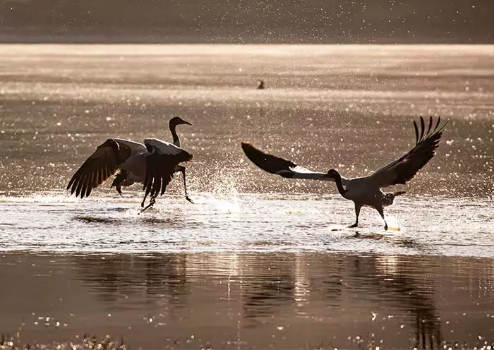 Highlight 1: Head to Linzhou County – the best spot to watch Black-Necked Cranes during the winter season. Capture stunning photos of these graceful birds, whether in groups or alone.