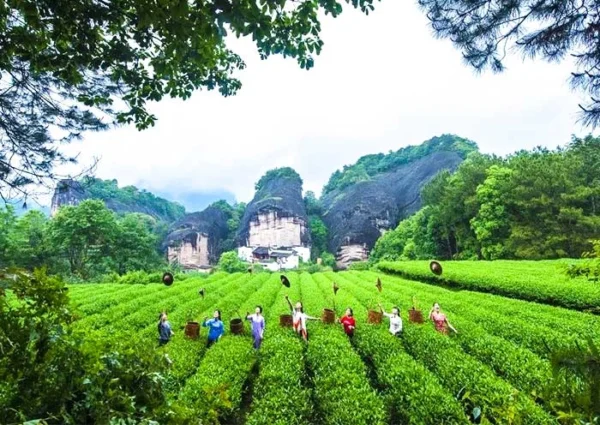 After breakfast, you will board a sightseeing bus to the Da Hong Pao Scenic Area (大红袍景区) to begin your exploration. Start by visiting Tianxin Yongle Zen Temple (天心永乐禅寺), which boasts a history of over 1,200 years, and delve into the stories surrounding the renowned tea called “Da Hong Pao.” Legend has it that in ancient times, a scholar fell ill while traveling through Wuyi Mountain on his way to the capital. The locals offered him water infused with the “divine tea” from Tianxin Yongle Zen Temple, and miraculously, he made a full recovery. Later, having achieved the top scholar position in the imperial examination, he returned to Wuyi Mountain and draped his scholar’s robe over the tea tree, forever naming it “Da Hong Pao” (Big Red Robe).