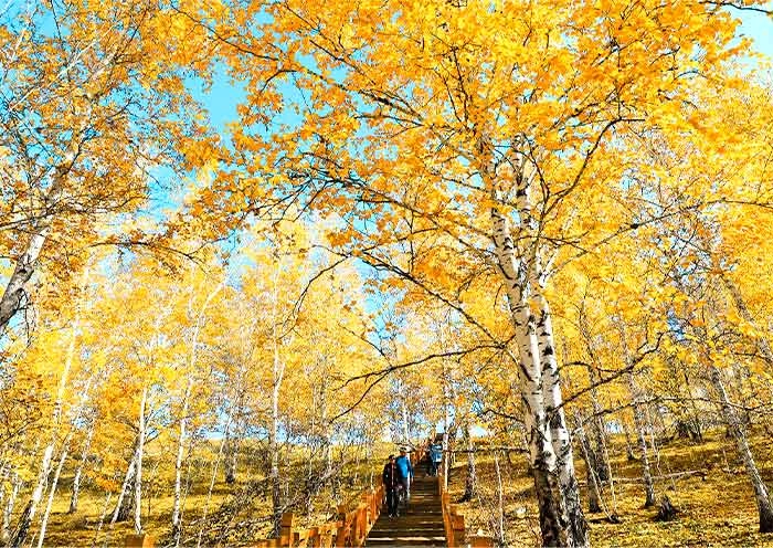 First, you will visit the Haur River Scenic Area. The Haur River’s winding course creates the unique “Nine Bends and Eighteen Turns” landscape. You will get to the observation deck and high points for breathtaking panoramic views. You can walk through tranquil birch woods along the riverbanks. In spring and summer, the forests are lush and green; in autumn, they turn golden, creating a fairy-tale atmosphere. Totally relaxing trip in this area.