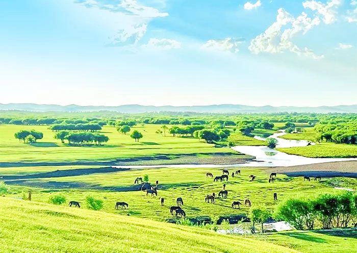 Highlight 1: Experience the vast and picturesque Hulunbuir Grassland, renowned as one of the world’s most beautiful grasslands. Immerse yourself in endless green fields, wildflowers, blue skies, and the unique nomadic culture of Inner Mongolia.