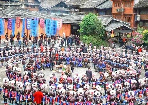 Upon arrival, you will be greeted with the “Twelve Cups of Block-Way Rice Wine” ceremony. Villagers dressed in magnificent silver headdresses and embroidered clothing will welcome guests and offer rice wine in ox horn cups. This is the highest etiquette of the Miao people for receiving distinguished guests, with each cup of wine representing blessings for a month. Afterward, you will walk along the stone-paved path to the Lusheng ground in the center of the village. Here, a wonderful Miao song and dance performance will take place, featuring toasting songs, Miao flying songs, and Lusheng dances in succession, leaving you mesmerized.