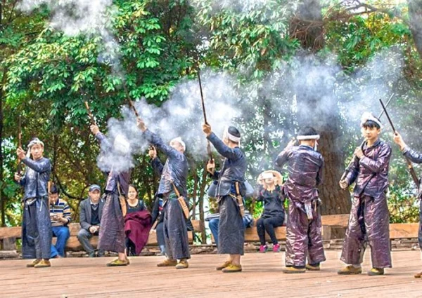 Next, journey to mysterious Biasha Miao Village (岜沙苗寨), known as “China’s Last Gunman Tribe.” Stepping through the village gate is like traveling back to an ancient era. The men wear dark blue cloth jackets and straight, wide-legged trousers, with firelocks and machetes hanging from their waists, displaying a heroic spirit. The men here start learning to shoot from a young age; for them, the firelock is both a tool for hunting and a weapon to protect their homes.