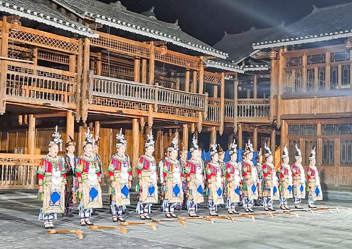 Highlight 4: Discover Zhaoxing Dong Village, the largest and best-preserved Dong village in China. Explore its majestic drum towers, elegant wind-and-rain bridges, and traditional stilted houses. Stroll through its five clans, each marked by a drum tower symbolizing Confucian virtues. As night falls, the village lights up beautifully, offering a magical view of Dong culture at its best.