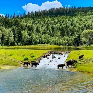 This afternoon, take a 25km drive (about 30 minutes) to Pudacuo National Park (普达措, also known as Potatso National Park), the first national park in China. Situated on the vast Tibetan Plateau and forming an important part of the “Three Parallel Rivers” scenic spot, the park is renowned for its pristine landscapes. Encompassing scenic hills, meadows, lakes, diverse plant life, and abundant bird species, the park is also home to over 100 endangered animals including leopards, cranes, macaques, and lynxes.