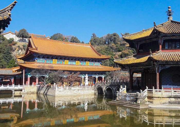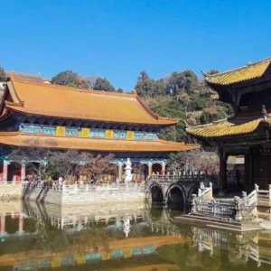 After that, you will head back to Kunming for Yuantong Temple. Located in the city center, Yuantong Temple combines tranquility amidst the bustling surroundings, offering a unique water courtyard temple. The temple has a history of over 1,200 years and is the oldest Guanyin Temple in China. Particularly noteworthy is its “Downhill Temple” design, where instead of ascending steps after entering the mountain gate, one descends gradually, creating a rare architectural feature among temples in China. Yuantong Temple is the only sacred place in the country that simultaneously accommodates the Han, Southern, and Tibetan Buddhist traditions. At the rear of the temple, there is a typical Southeast Asian Buddhist architectural structure called the Bronze Buddha Hall (铜佛殿), which was built in 1985 specifically to house a bronze statue of Shakyamuni Buddha presented by the Buddhist Association of the Kingdom of Thailand. It has gained a high reputation in the Southeast Asian area and attracts many pilgrims and locals to visit every year.