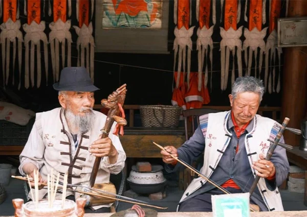 Leaving the Jade Dragon Snow Mountain, you’ll continue your journey to Baisha Village (白沙村), the birthplace of the Mu chieftaincy and the ancient capital of the Naxi ethnic group. Part of the UNESCO World Heritage Site “Old Town of Lijiang”, Baisha Village offers a unique glimpse into the Naxi group’s rich history and culture. Here, you can visit the Baisha Murals (白沙壁画), showcasing a unique fusion of Buddhist, Taoist, and local Naxi religious elements, reflecting the diverse spiritual beliefs of the region. These murals are found within several temples, including the Dabaoji Palace, the Liuli Temple, and the Wenchang Palace.