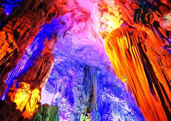 Afterwards, you will pay a visit to the Reed Flute Cave, also known as the Palace of Nature’s Art. Inside the cave, you’ll find a stunning array of uniquely shaped and exquisitely transparent stalactites, stalagmites, columns, curtains, and flowers that are truly a sight to behold. These formations create a variety of stunning landscapes, including Lion Peak at Dawn, the Primitive Forest, the Pinnacle of Dragon and Elephant, and the Mountain of Fruits and Flowers, leaving visitors in awe. When illuminated with colorful neon lights, it feels like walking through a magical underground palace that will leave you spellbound.
