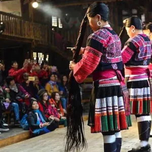 Highlight 7: Escape crowds at Langde Miao Village, the “Hometown of Chinese Folk Song and Dance.” Immerse in authentic Miao culture with the “Twelve Cups of Block-Way Rice Wine” ceremony, vibrant Lusheng dances, and traditional long-skirt costumes amid historic stilted houses.