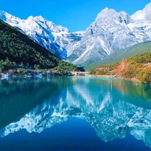 Highlight 6: Marvel at the majestic Jade Dragon Snow Mountain, a towering 5,596-meter peak adorned with glaciers cascading down its slopes. Take the cable car up to Spruce Meadow, where you can hike and explore the meadows and pristine forests.