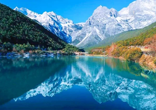 Afterward, let’s head to Black Dragon Pond Park (黑龙潭公园), located at the northern edge of Lijiang Old Town. This picturesque location offers stunning views of the surrounding landscape, highlighted by the majestic Jade Dragon Snow Mountain. On clear days, the reflection of the snow-capped peak on the tranquil water of the Black Dragon Pool creates a breathtaking scene.