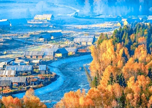 Hemu (禾木村), a remote and picturesque village nestled in the Altai Mountains of northern Xinjiang, is often referred to as one of the most beautiful villages in China. Known for its traditional wooden houses, vast grasslands, dense birch forests, and breathtaking mountain views, the village offers a glimpse into a simple way of life. It is home to the indigenous Kazakh and Tuvan ethnic groups, who maintain their nomadic lifestyles and deep connection to nature. The village feels like a step back in time, with horse-drawn carts and rustic wooden cabins adding to its charm. (Hemu in Summer & Autumn Photography: In summer, Hemu gives you a feel of lush greenery, blooming wildflowers. In autumn, the world turns into a living painting, and the mountains are painted in vibrant shades of gold, orange, and red.)