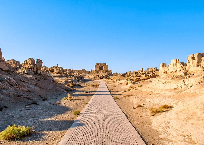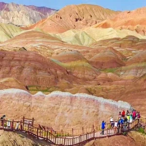 Famous for its eerie and otherworldly rock formations, this area has been shaped by millennia of wind and water erosion, giving it a dramatic, surreal atmosphere. It’s called “Ghost Town” because when the wind blows through the rocks, it produces eerie, whistling sounds, resembling ghostly howls. It was also a filming location for Crouching Tiger, Hidden Dragon. You will explore the site via sightseeing bus, allowing you to walk among the towering yardangs. Discovering formations that resemble castles, faces, and animals is a captivating experience.