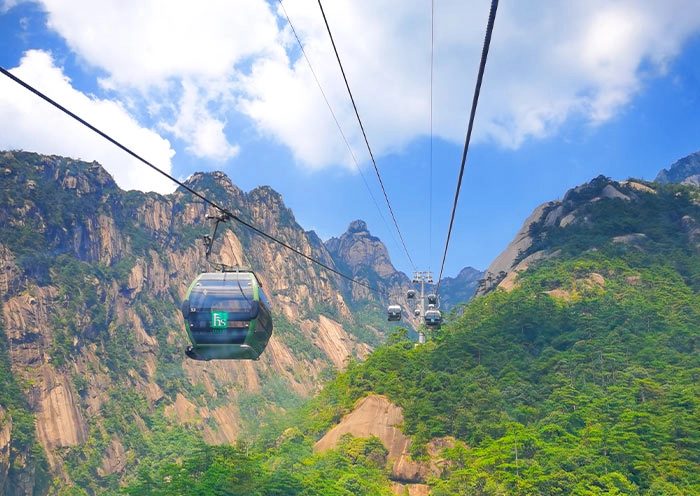 To maximize your time and energy and experience the mountain’s most mesmerizing sceneries on the top, a sightseeing bus will transfer you directly from the foot of the back mountain to Yungu Temple. From here, you’ll board the cableway to White Goose Ridge Station (8 mins). As you ascend, give you breathtaking aerial views of the forests below—a canvas of endless green, with granite peaks and twisted pines veiled in mist. Upon arrival, you’ll notice the air is cooler and crisper. Now begins your trek to the poetic Begin-to-Believe Peak. Huangshan is famous for its ancient and oddly shaped pine trees. En route, you’ll admire several like Black Tiger Pine, and Harp Pine, each with its unique shape and character. When you reach Begin-to-Believe Peak, you’ll understand how it got its name. The stunning vistas, which include a mixture of cliffs, valleys, and uniquely shaped rocks, will make you begin to believe in the mystical aura that Huangshan is famous for. After soaking in the views at Begin-to-Believe Peak, you will trek for about 40 minutes to your mountaintop hotel for a break.