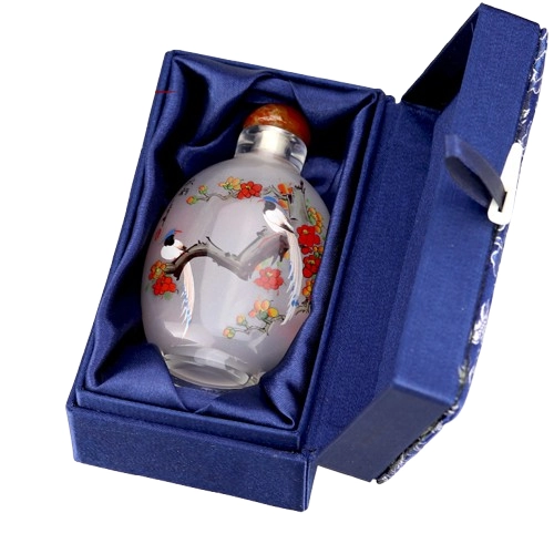Snuff bottle is approximately 9.4 cm tall and 5.6 cm wide (approximately 65 grams).